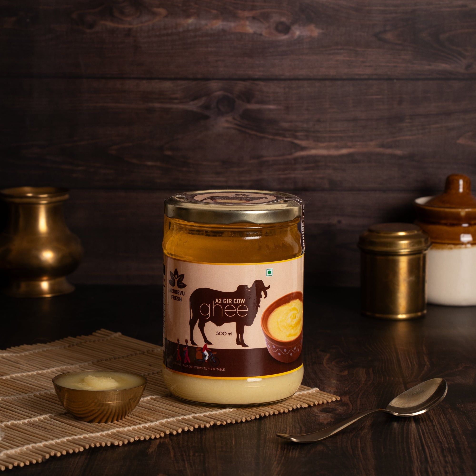 Indulge in the goodness of Hebbevu Fresh's Pure Desi Ghee, crafted with care from the milk of purebred A2 cows. Embracing the time-honoured bilona method and lovingly churned by hand, every jar holds the essence of traditional wisdom and wholesome nourishment. You can check our pure Desi Ghee as well as our other products on our website and application, available on both iOS and android.